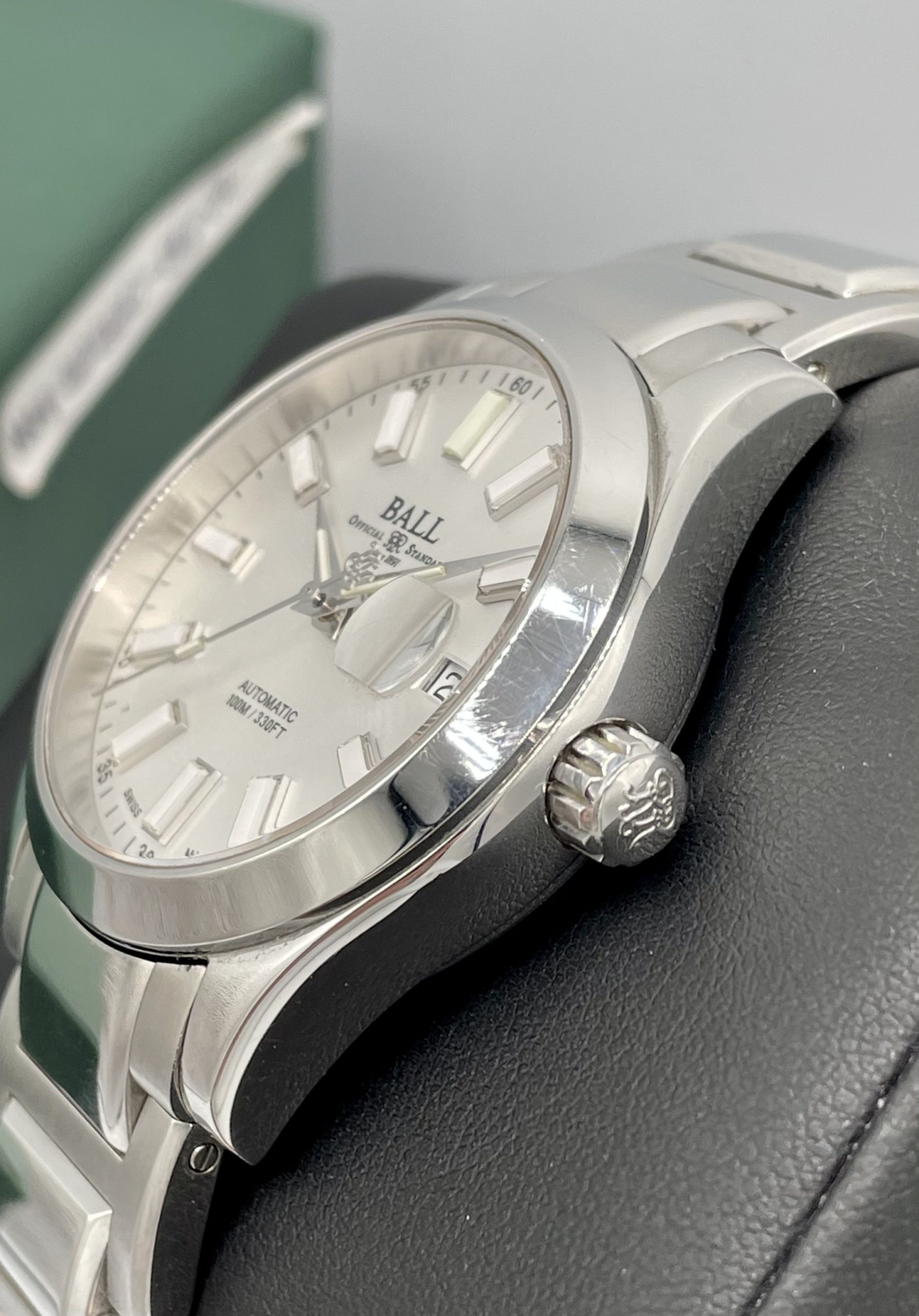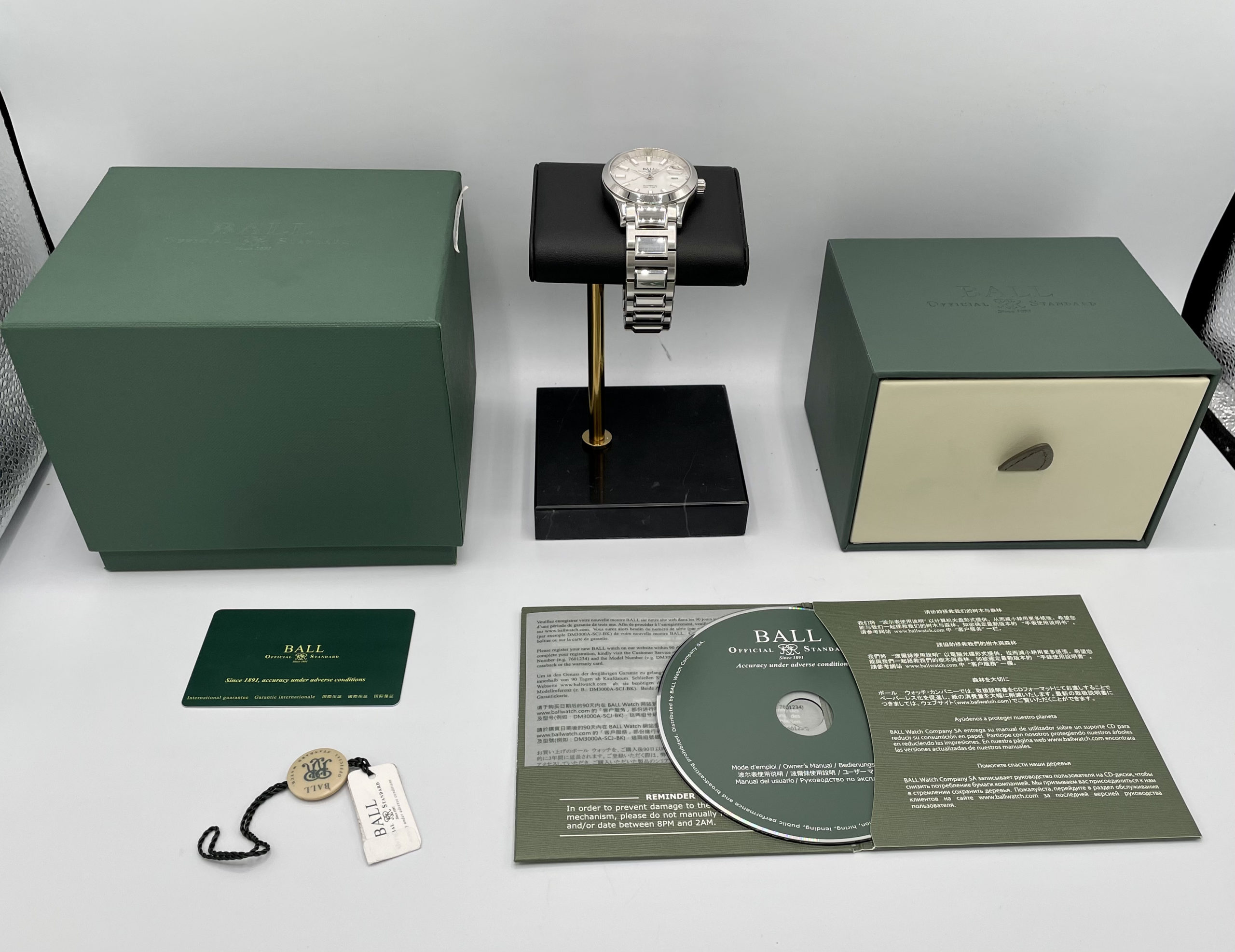 As-New Ball Engineer II Marvelight Swiss Automatic with gorgeous Silver Dial! This watch has it all including a 40mm Stainless Steel Case, Swiss automatic CoSC Movement, & Full length Stainless Steel bracelet. This one comes with a complete box set as shown in pictures!
