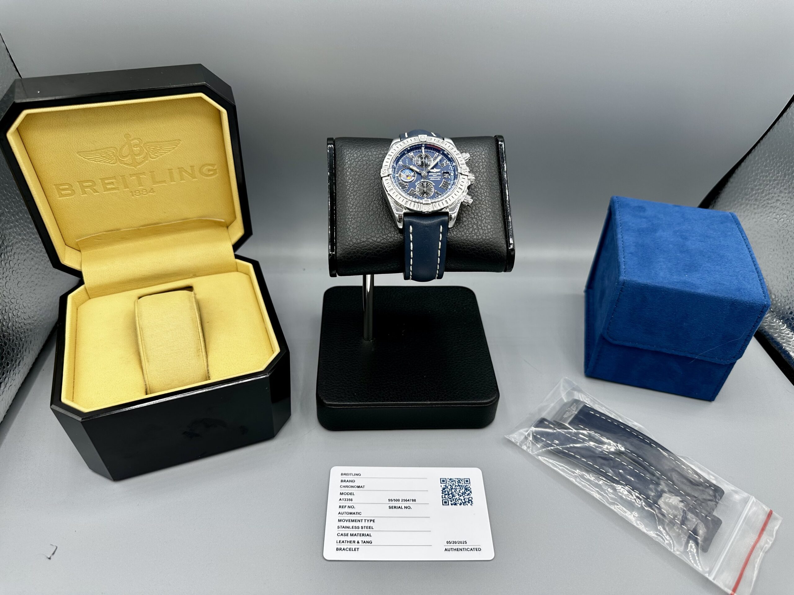 BOXES/PAPERS: Breitling Box Set, eBay Authentication Card, Additional Breitling strap/buckle, etc – Everything in photos!