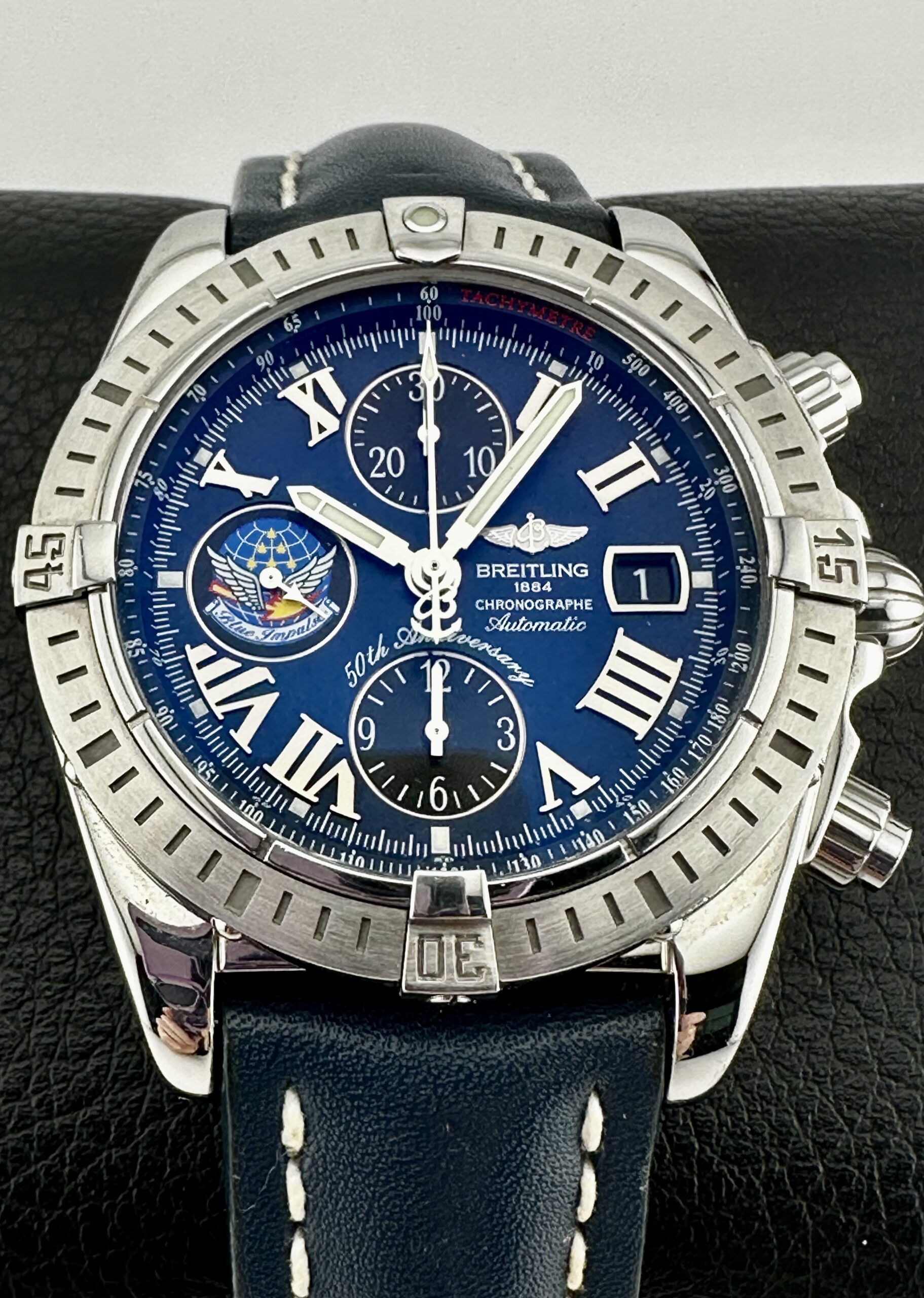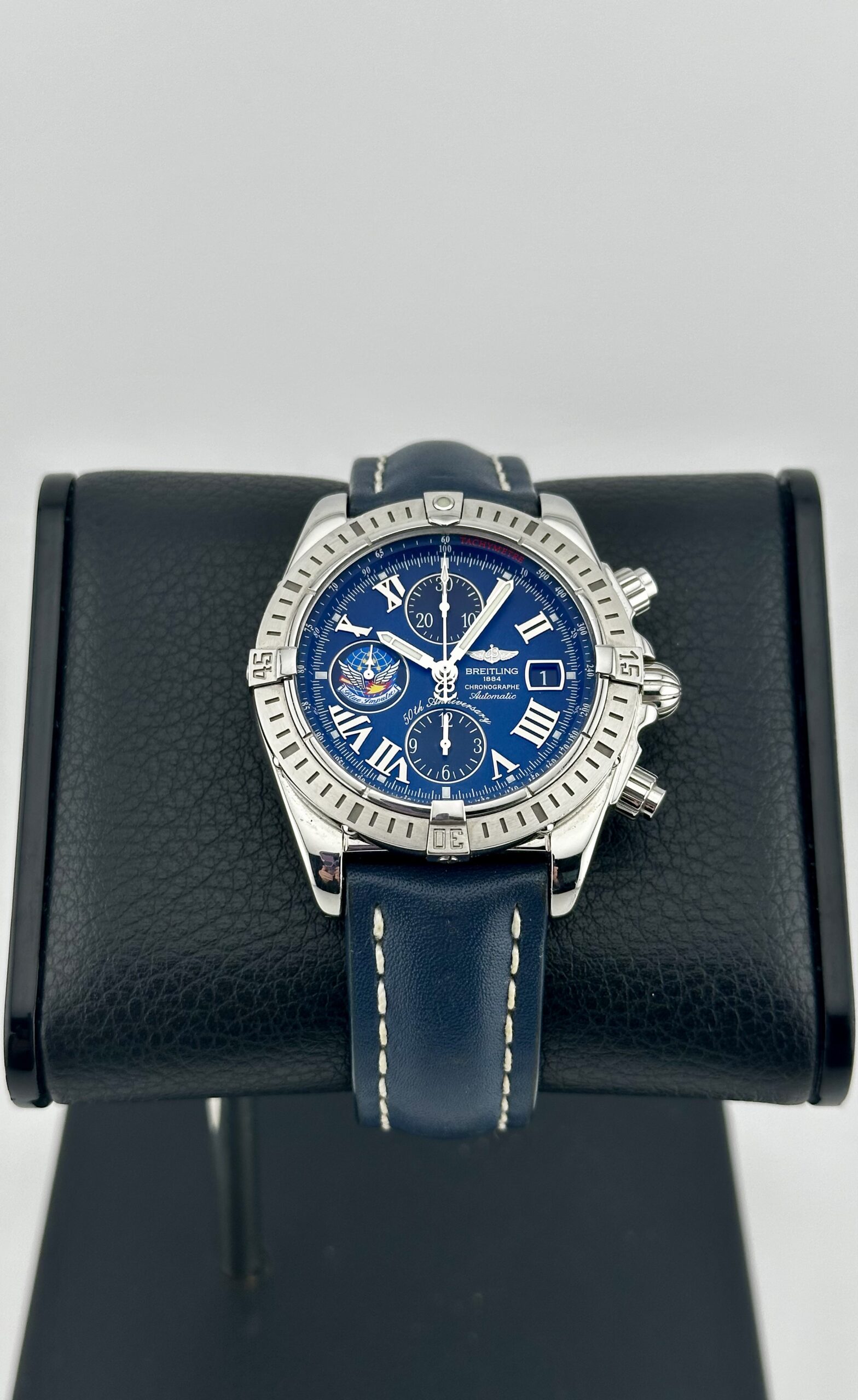 An Absolutely Rare & Gorgeous Breitling Chronomat Evolution Limited Edition!! This is the 50th Anniversary BLUE IMPULSE Limited Edition produced in 2010! Only 500 of these were ever made by Breitling with this being #55/500. Back when Breitling made extraordinary Timepieces!!