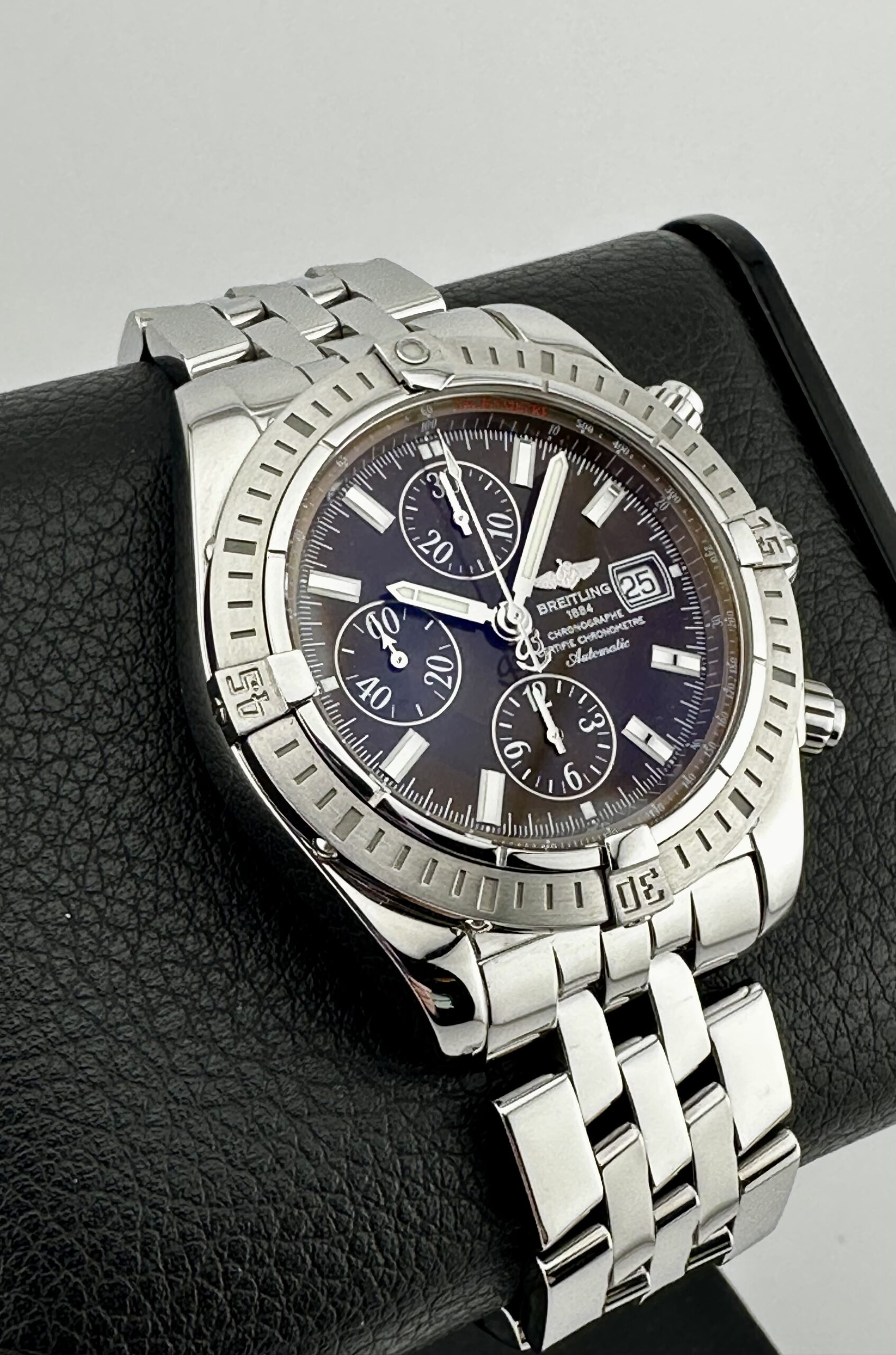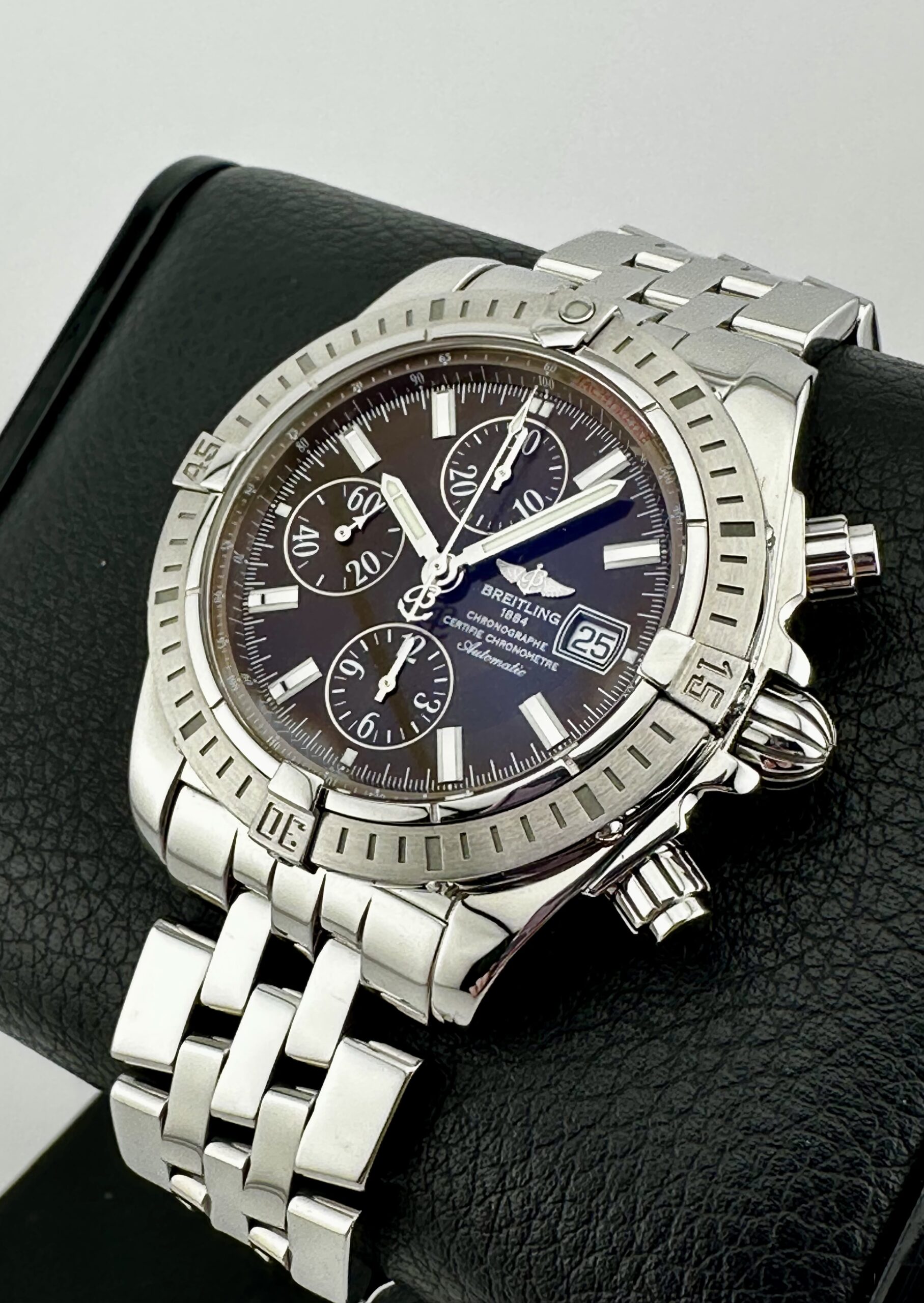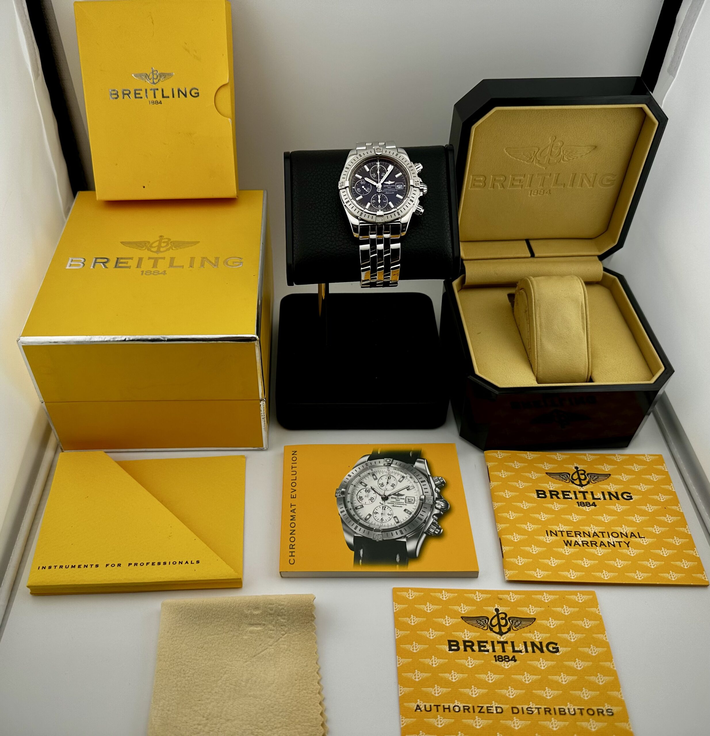 An Absolutely Rare & Gorgeous Breitling Chronomat Evolution!! This is a Very Limited Edition of Only 400 Pieces!! Simply Stunning! Also very rare Complete Box Set with Original Warranty Book as shown in pictures. This Comes from my private Breitling Chronomat Evolution 9 Piece Collection! The Chronomat Evolution – when Breitling made extraordinary Timepieces!!