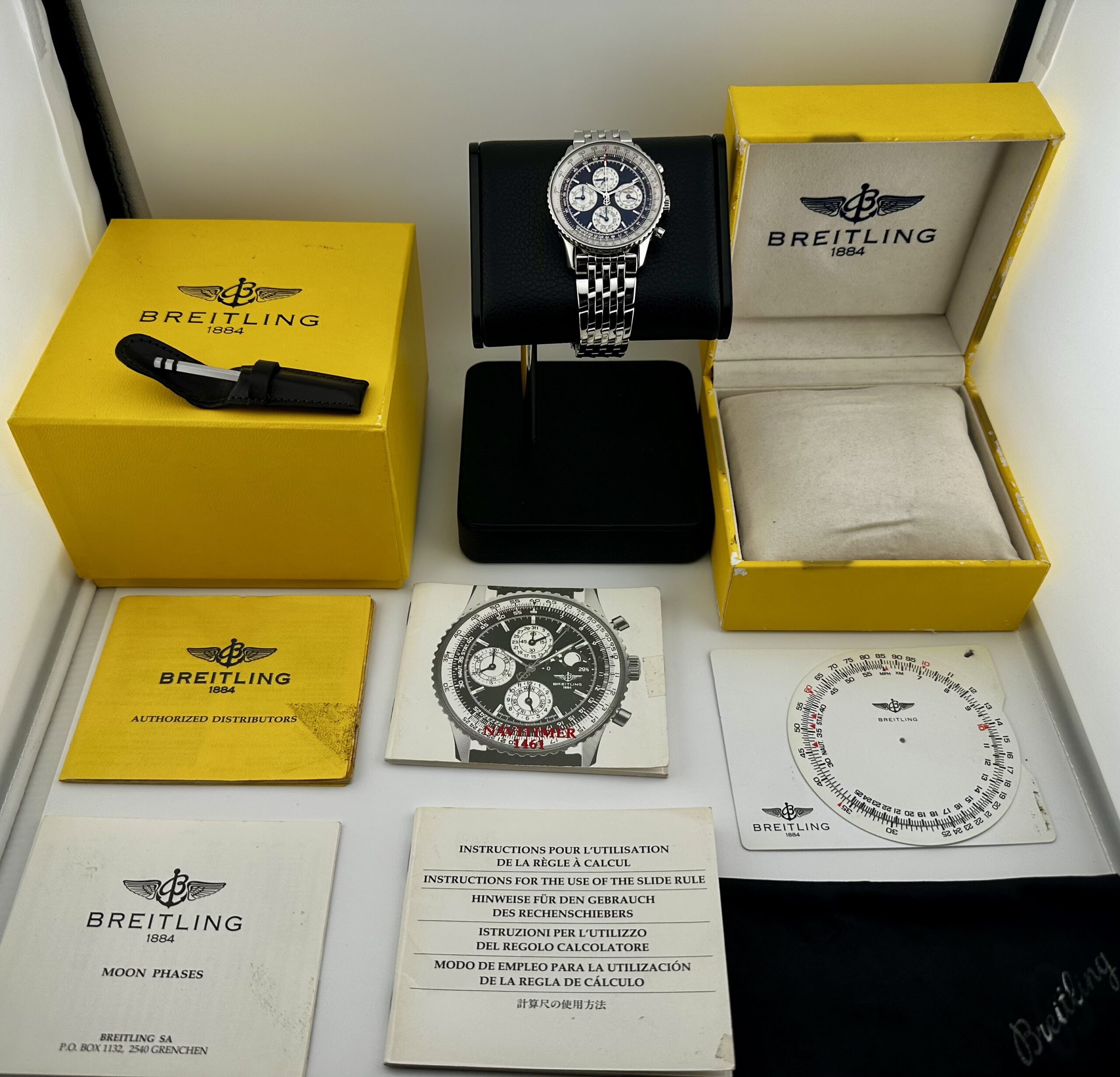 An Absolutely Rare & Gorgeous Breitling Navitimer 1461 with Complete Original Set from 1997!! Incredible condition and has all original links to the bracelet! This is a collector ready dream Breitling…Back when Breitling made extraordinary Timepieces!!