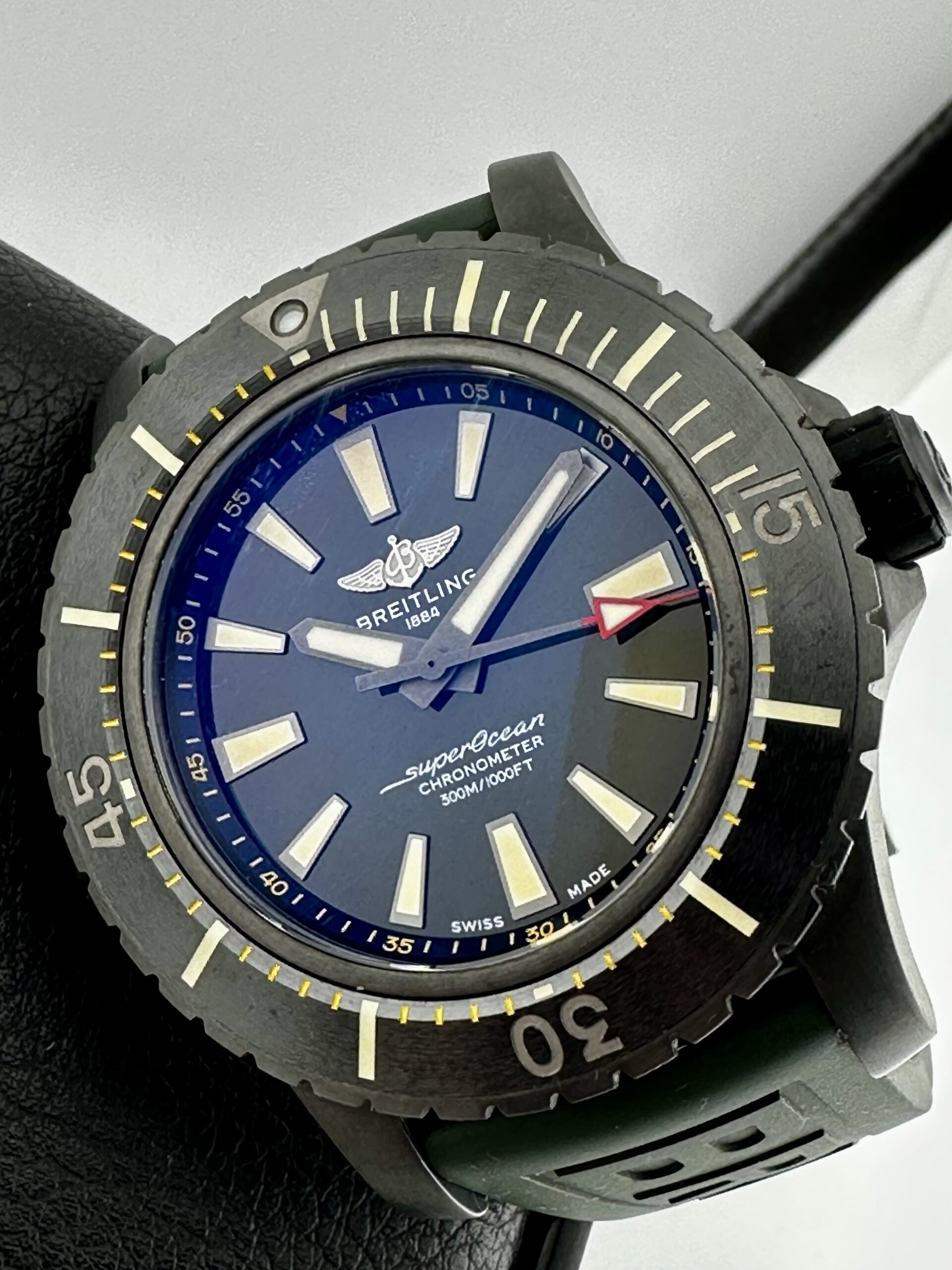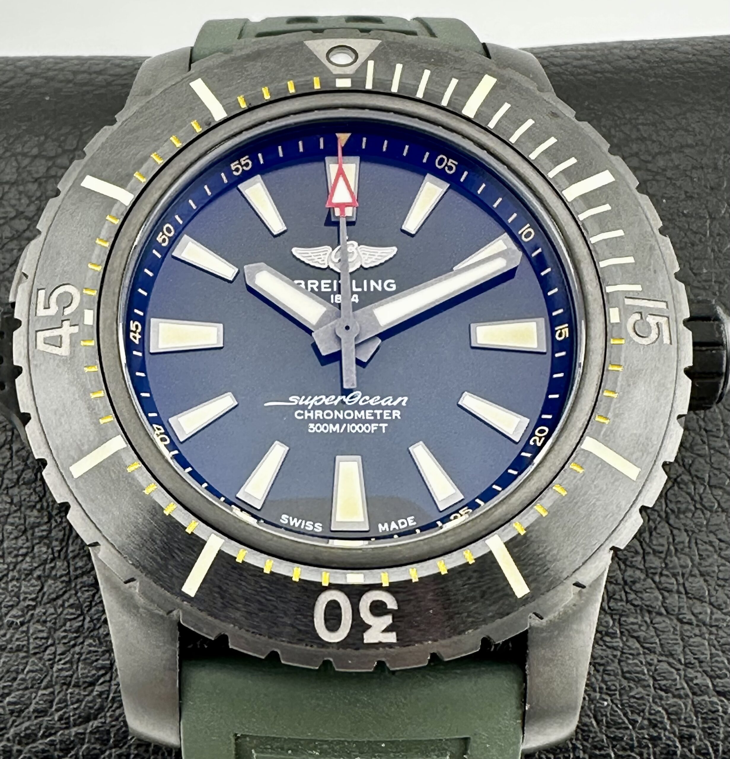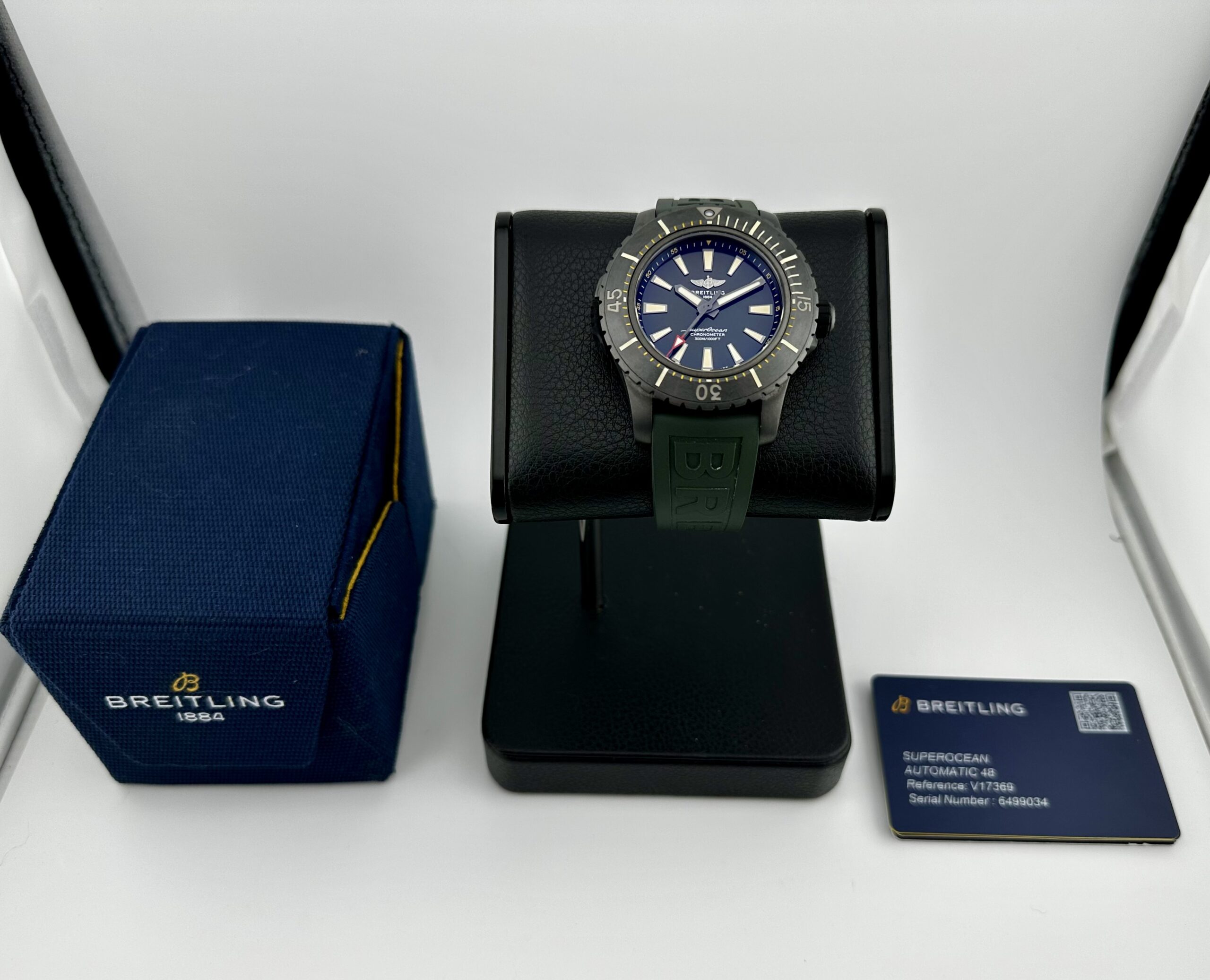 Gorgeous Breitling Boutique Exclusive SuperOcean 48 with Awesome Green Dial! Awesome Black DLC Titanium case without a mark on it!!! Brand New Oct 2024 and has Breitling warranty through Oct 2026!!