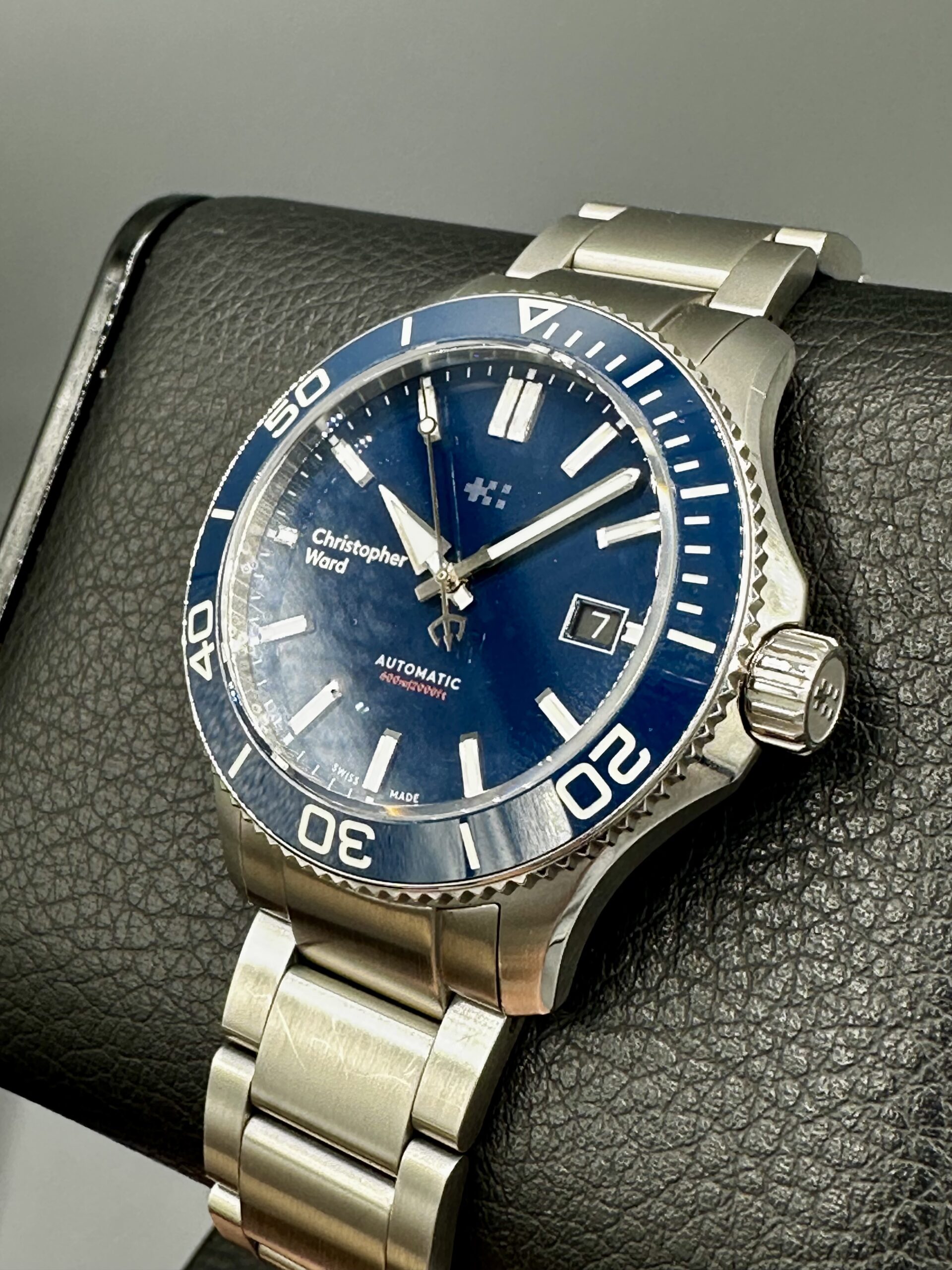 Outstanding Christopher Ward C60 Trident Pro 600 with Gorgeous Blue Dial & Full bracelet. This is a complete set!!