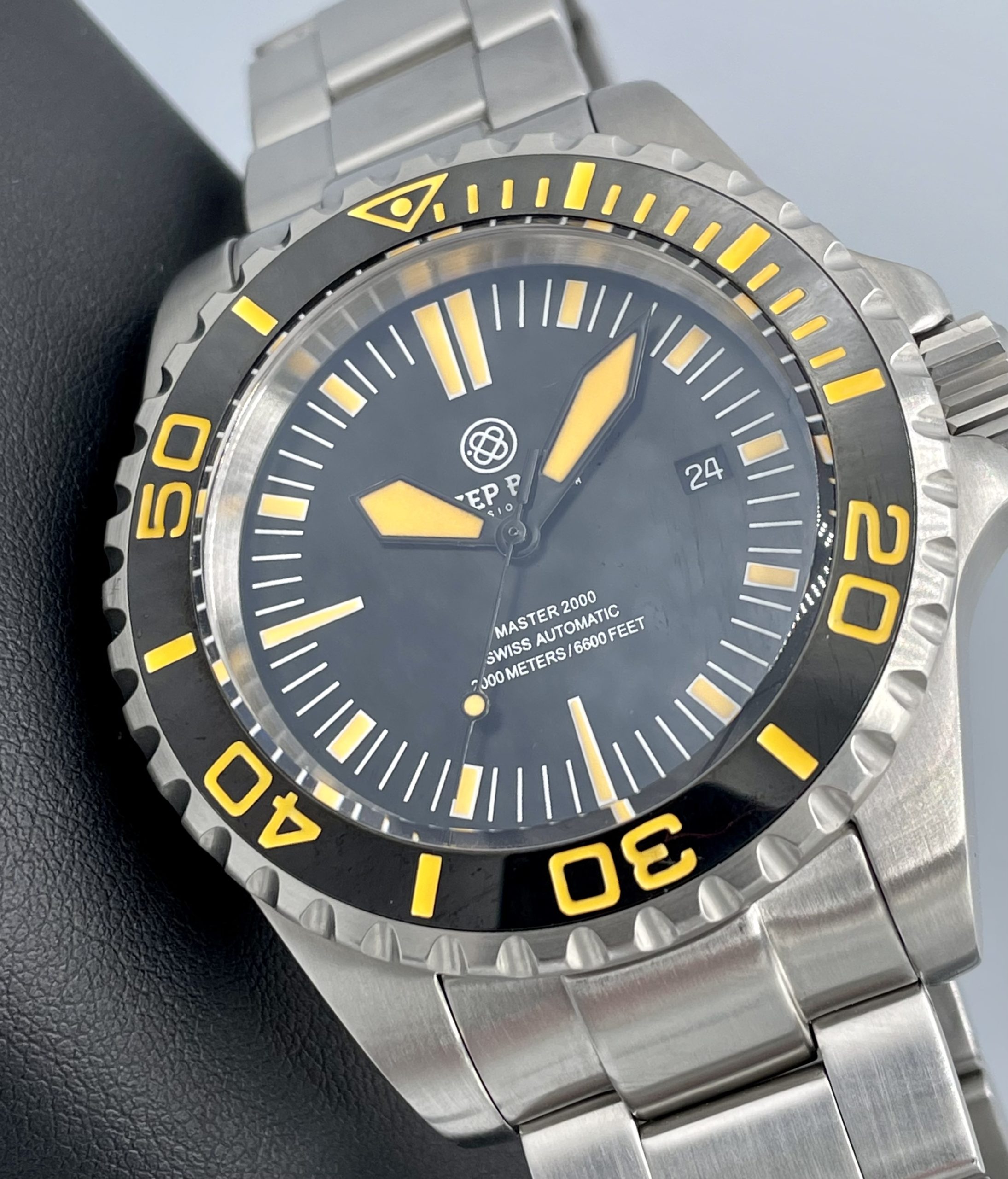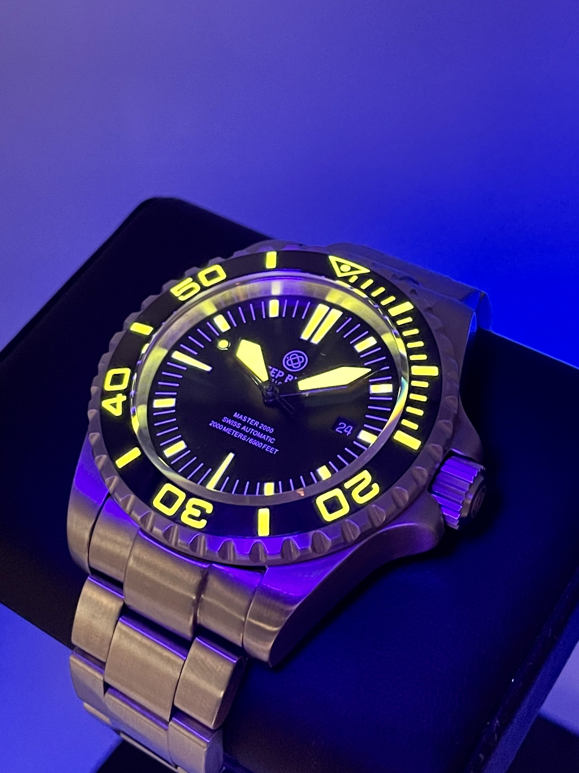 Deep Blue Watches? Maybe you haven’t heard off the brand as it’s not one that you can find at your local retailer. Deep Blue Watches is an American company based in New York City. Deep Blue Watches was founded in 2007, and according to the brand they quickly became the industry leader when it comes to Professional grade dive watches. Well, what can we say… at least that this information is new to us. One way or another, the watches are rugged and legible, and with depth ratings of 500 meters or more, and a Helium escape valve, these watches qualify as serious dive watches. The Deep Blue Master 2000 Limited Edition that we’re reviewing today, can go down to 2,000 meters, and another model can even go down to 3,000 meters! With such depth ratings the Deep Blue watches can be used by professional divers who sometimes dive to such depths.