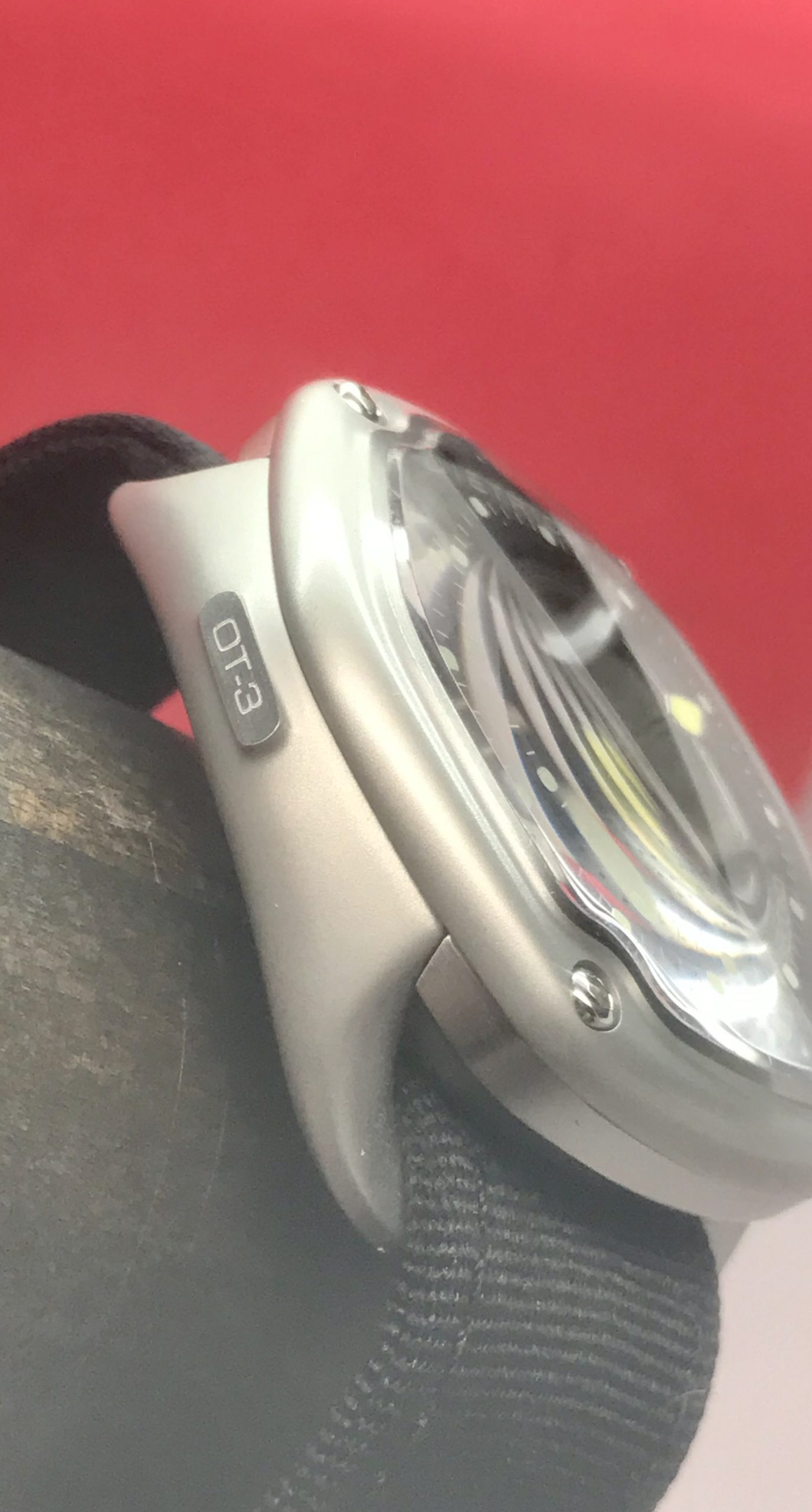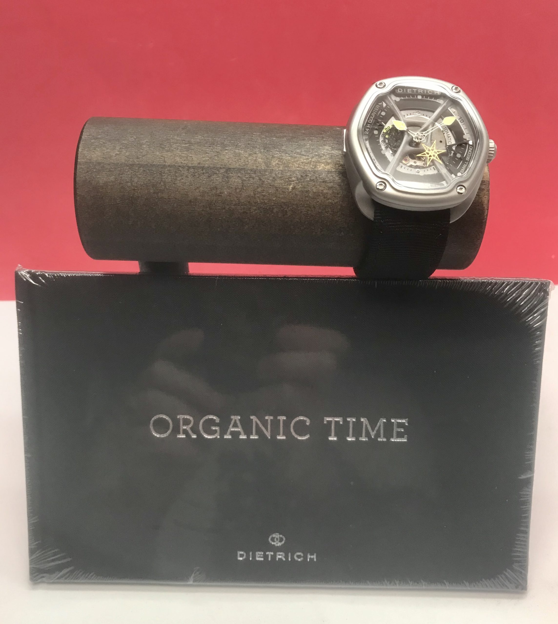 Organic Time 1 (OT-3) has a case, frame and bezel made from 316L; stainless steel case frame and bezel all these fixed together by four hex screws. The multiple case construction gives the whole watch a dynamic that is seen only in watches that cost 20 times more. With multiple case finishing consist of micro-beads blast, satin and polished, it allows the wearer to admire the form and lines of this truly unique case. With a brushed emblem at 9 o’clock and a crown at 3 o’clock with polished Dietrich “69” logo yet again creates another dimension.