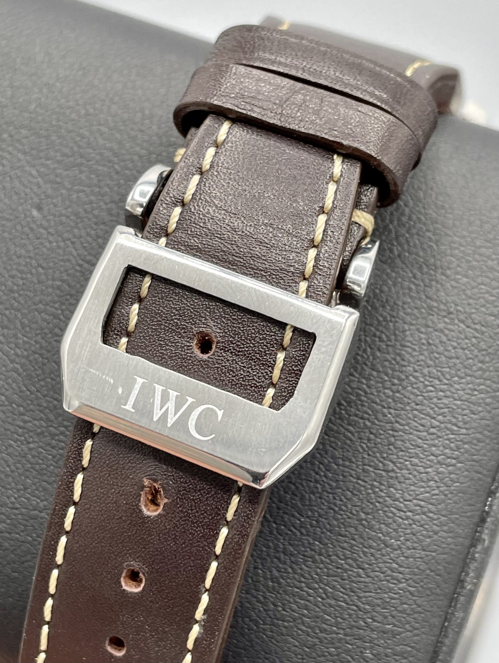 STRAP/BRACELET: – Gorgeous IWC Big Pilot strap with deployment buckle.