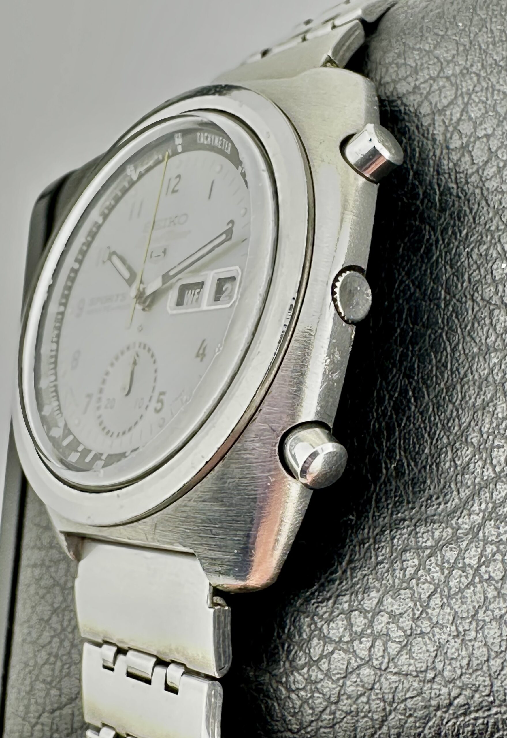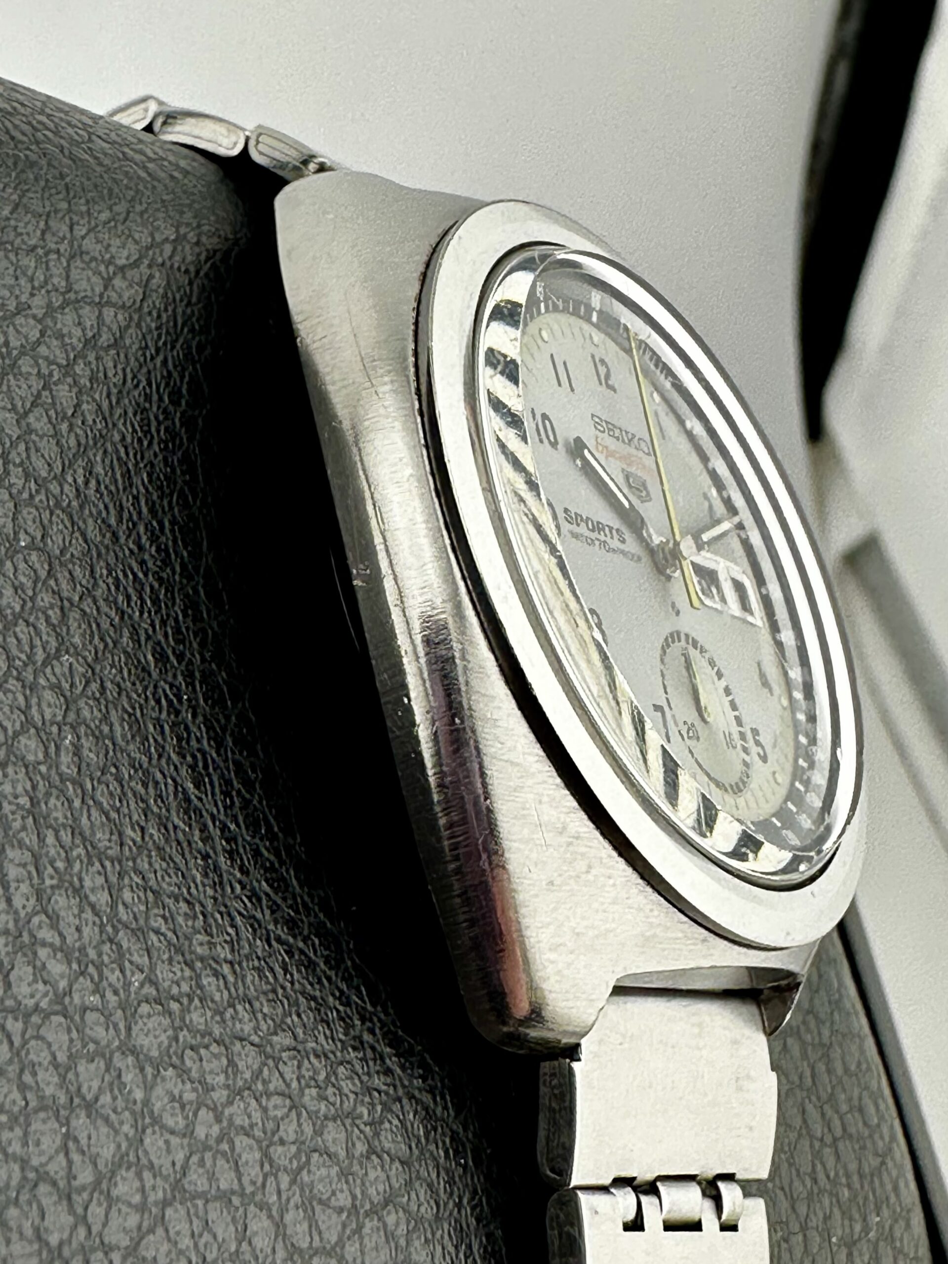 STRAP/BRACELET: – Seiko Sports Stainless Steel Bracelet (not the original 1970 bracelet) – will fit up to a 7 inch wrist.