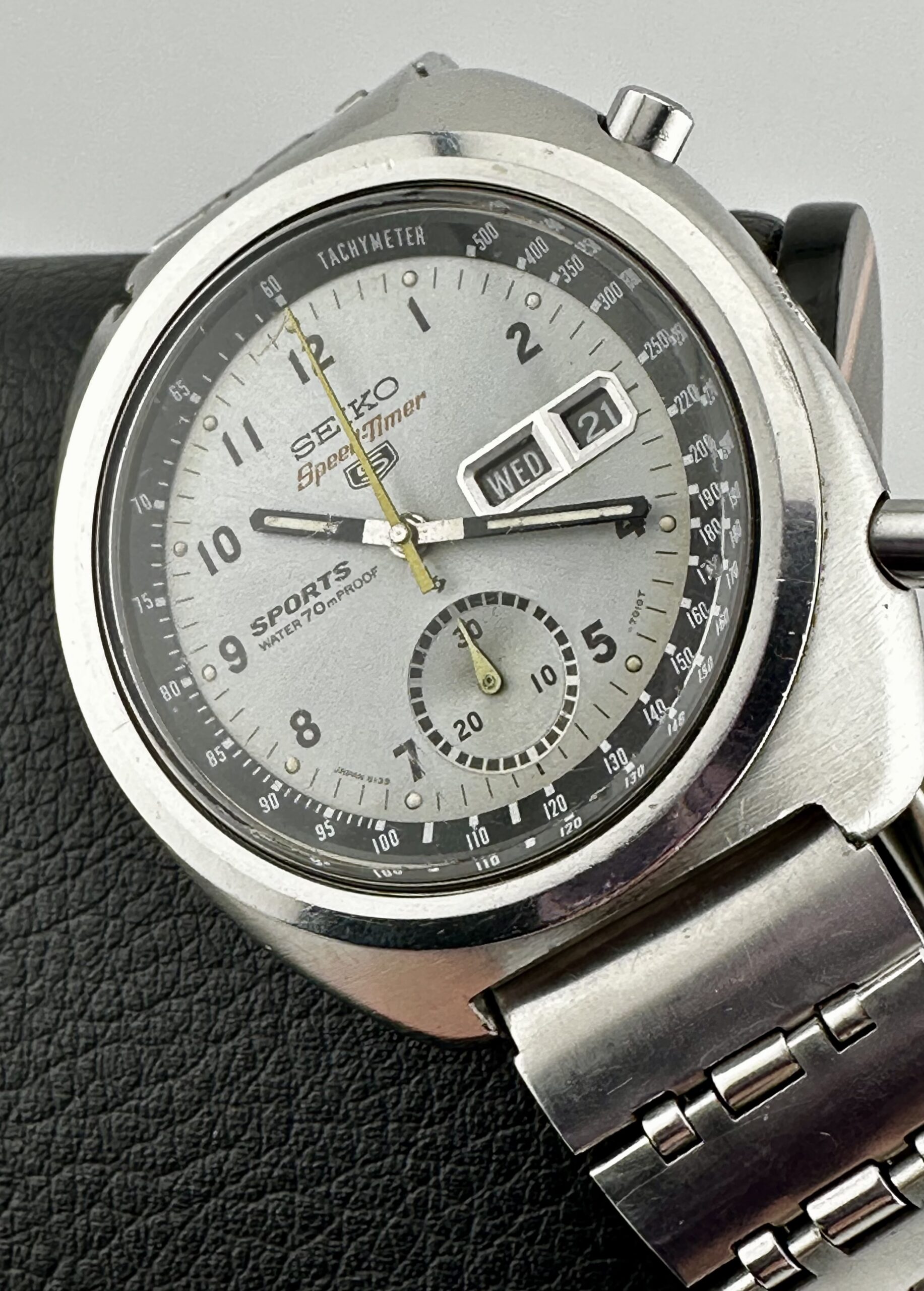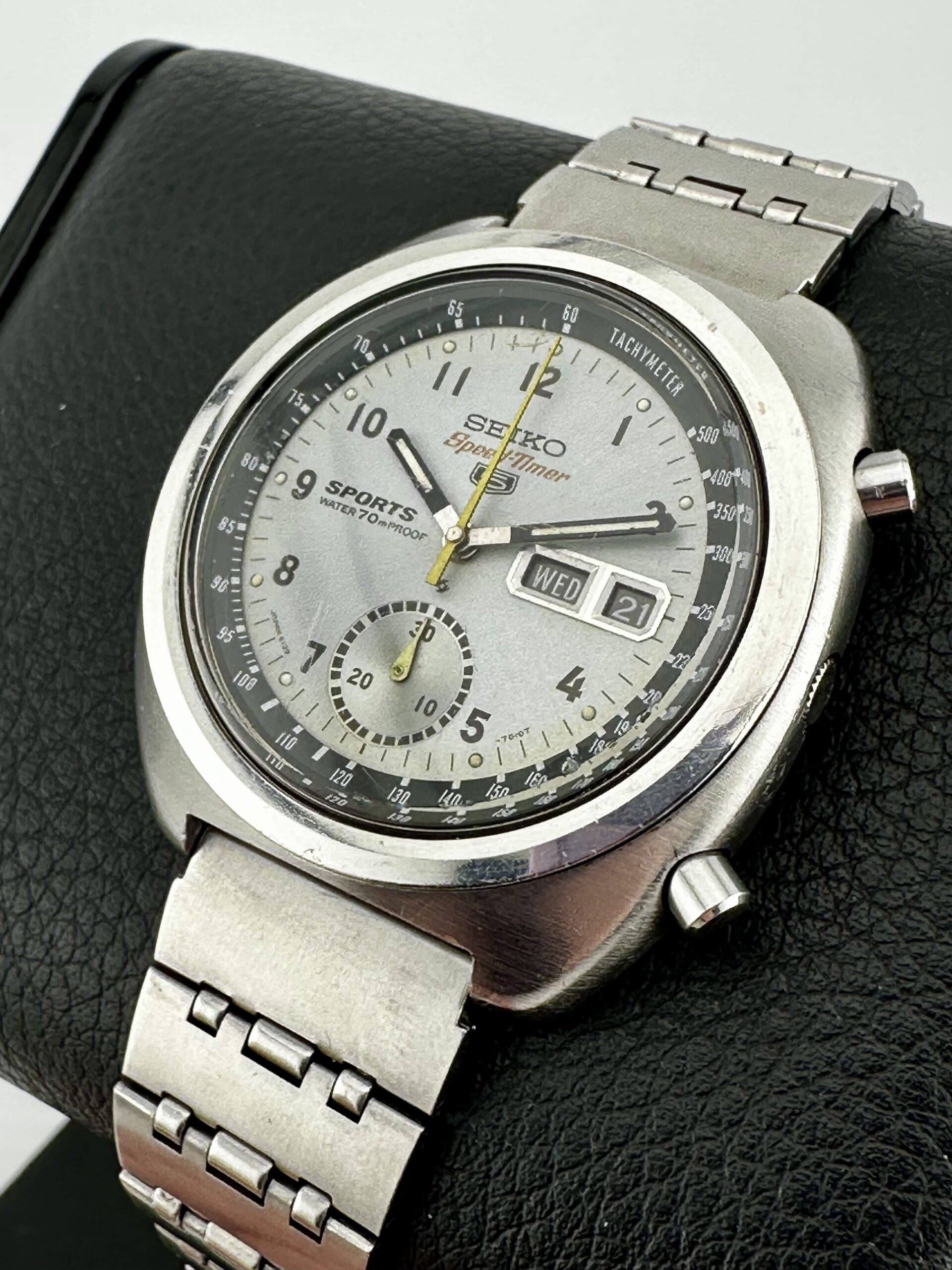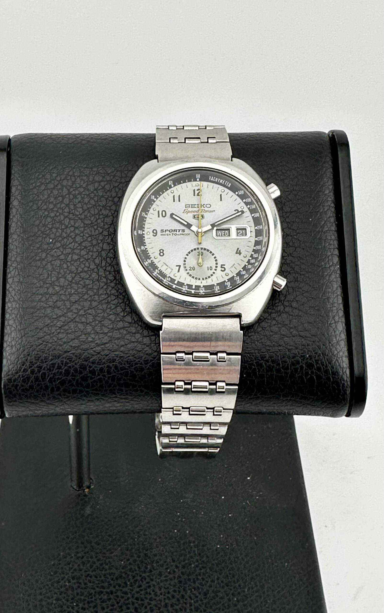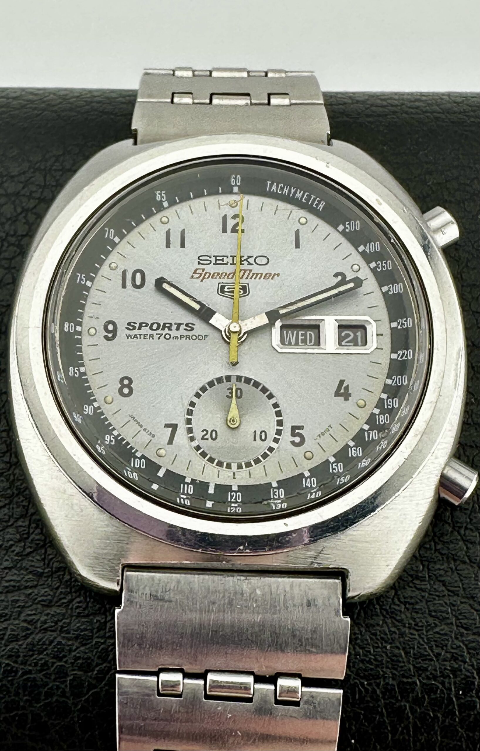 The Seiko 6139 automatic chronograph – a historical movement in its own right, like this full serviced (May 2022) 1970 Seiko 6139-7010 SpeedTimer “Iceberg Military” with Arabic dial here, only sold in Japan – was one the world’s automatic chronograph, beating out the likes of Zenith’s El Primero and Heuer’s Calibre 11.
