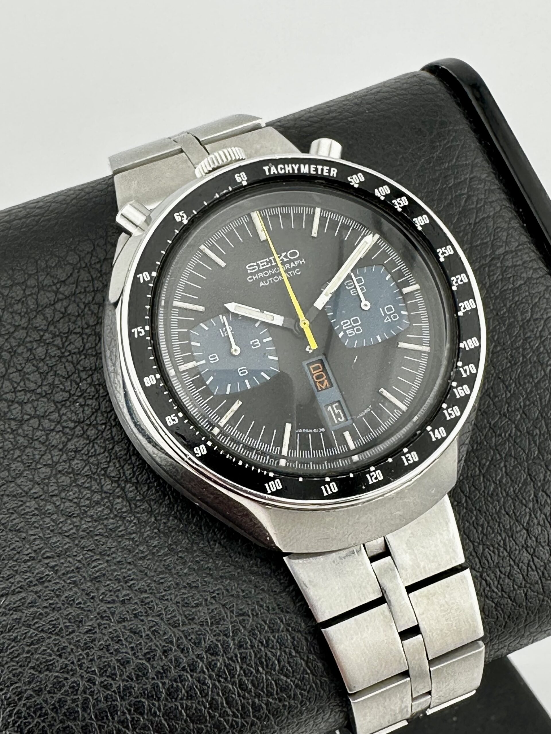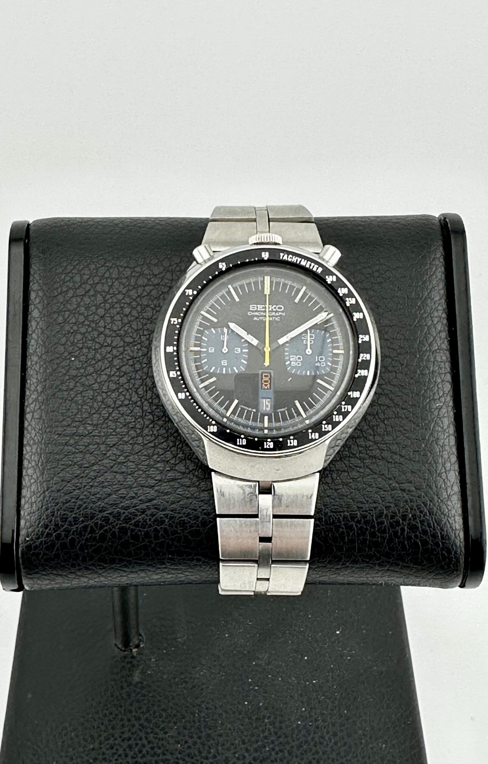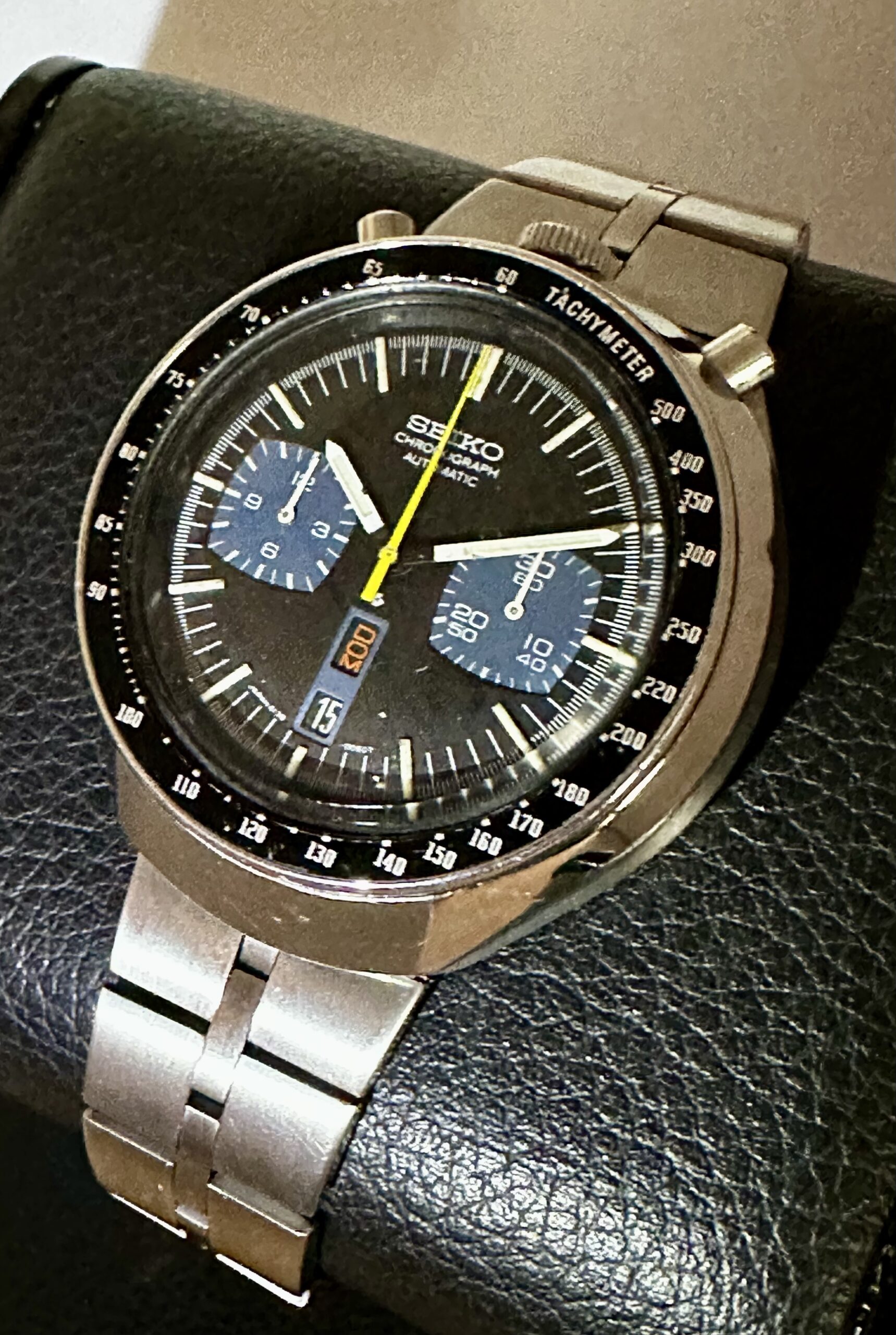 The Seiko Bullhead was produced, principally, in two dial variants. The black/blue version seen here was made alongside a brown/gold edition. Both models were sold until 1979, which also happened to be the last year of production for the automatic chronograph movement, the 6138. Per some really great posts it appears that the black-dialed edition was only made in one style. The brown version, however, received variants including a dial stating “Seiko 5” and “SpeedTimer”. I’ve recently seen some wild black “JDM” editions for sale, but I have a difficult time in confirming their correctness. Not an issue with this one!!
