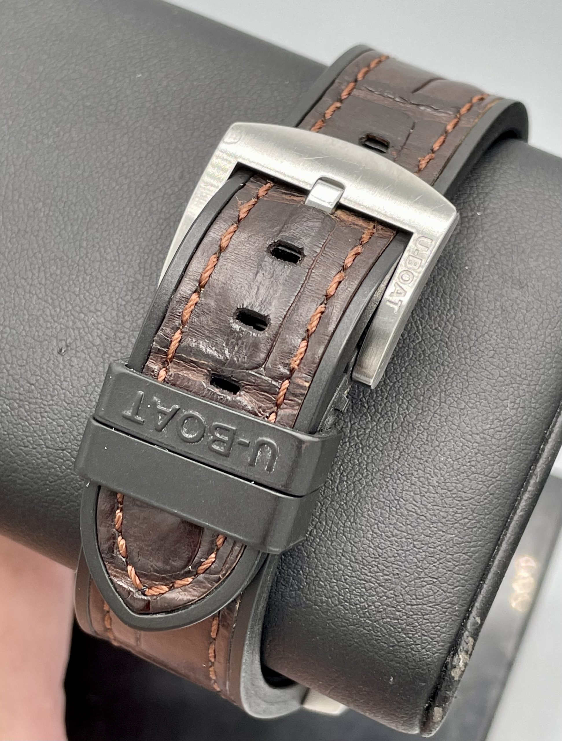 STRAP/BRACELET: – 2 – Original U-boat Brown leather strap on signed stainless steel buckle & additional Brand New Orange Alligator leather strap with steel buckle.